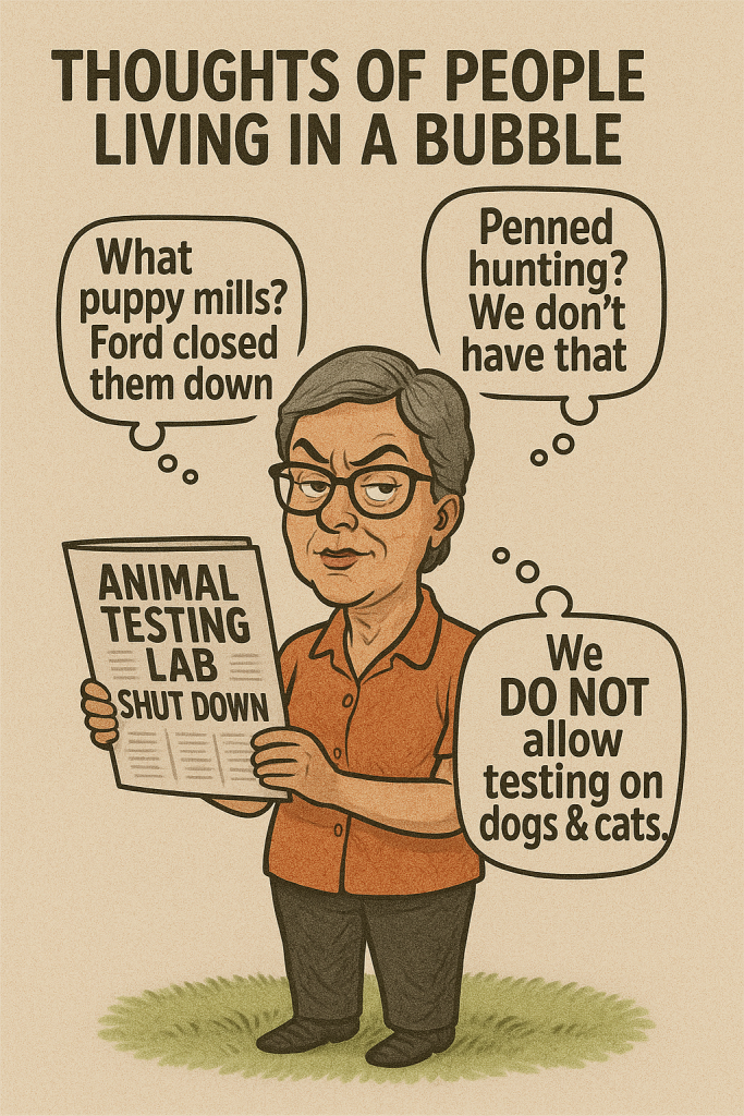 Unless we get out of our bubbles and help our friends and loved ones get out of their bubbles, significant improvements for animals will never happen.