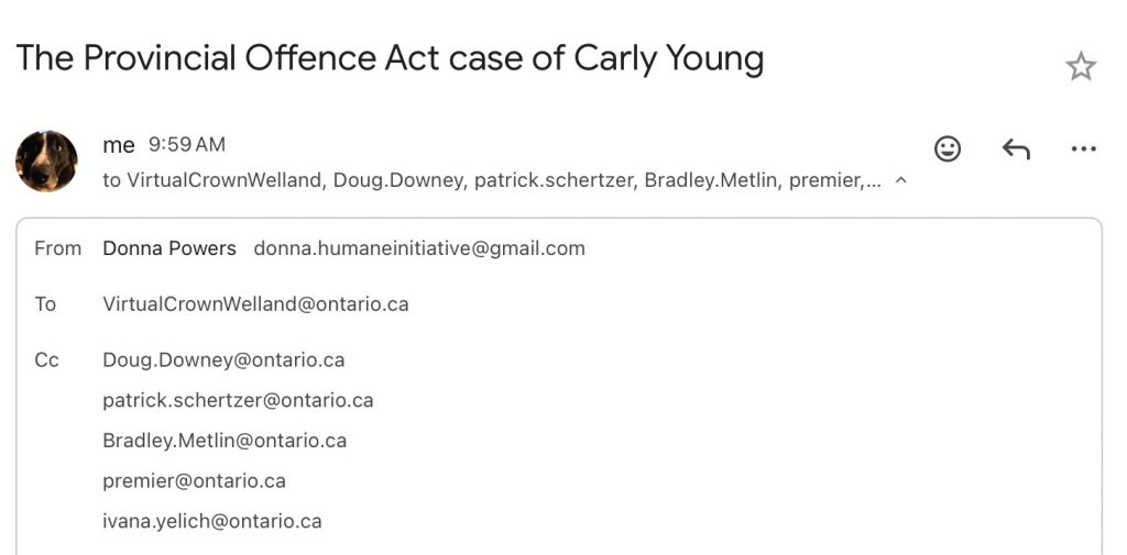 Last week in Welland (29 Jan 2026) accused animal abuser (killer) Carly Young’s trial continued.