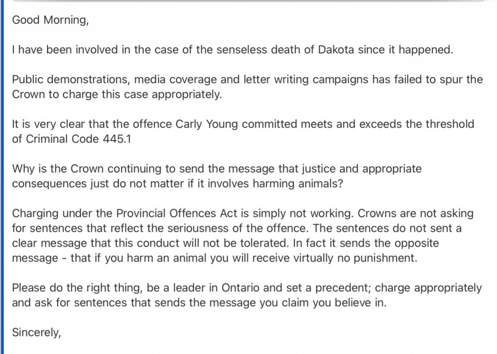 Dr. Ian Welch DVM testified last week for the Crown. His testimony was incredibly upsetting. His testimony made crystal clear the actual injuries Dakota had and the immeasurable suffering she endured.
