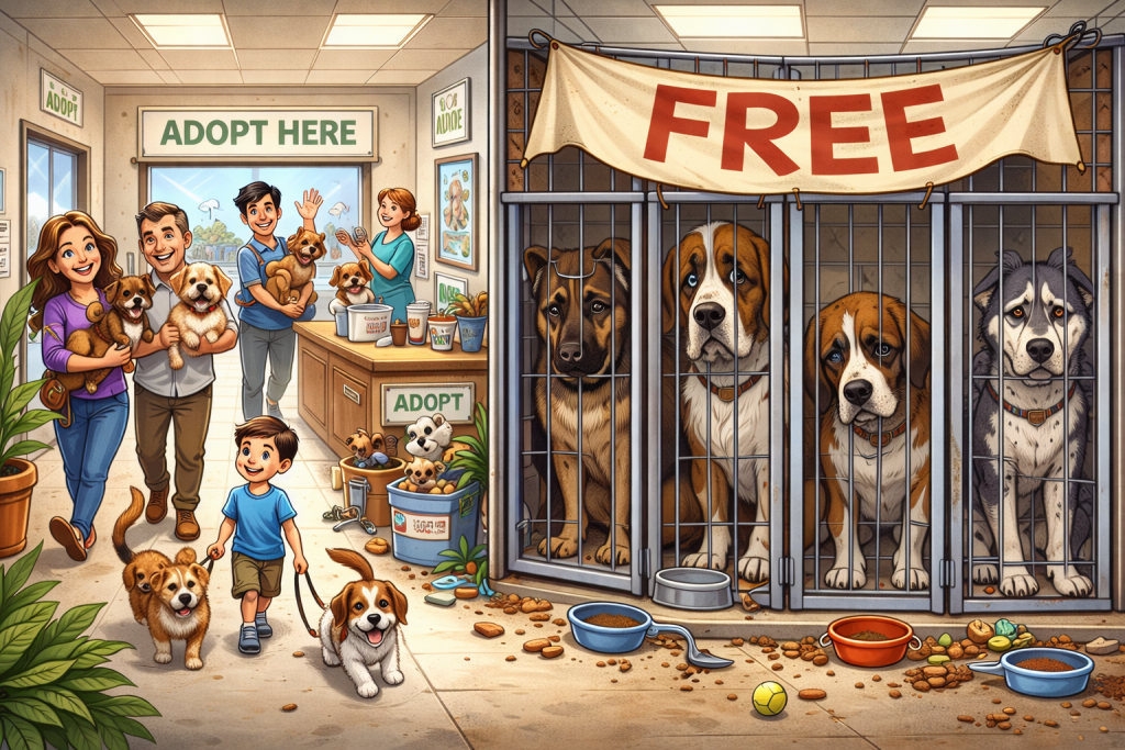 Shelters are full I understand that, but from an animal welfare perspective, the concept of free dogs and the lack of adopter thorough screening is so alarming on multiple fronts:
