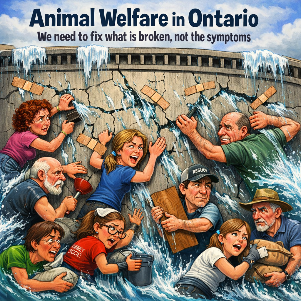 I am speaking about Ontario here but this situation is Canada wide; we are in an animal welfare crisis, it is not getting better – in fact it is getting worse. For many in the rescue, advocacy, activist world….we do not see a light at the end of the tunnel.